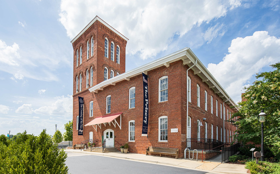 Prizeries were sites where tobacco was pressed into barrels, and this 1902 tobacco prizery in South Boston was given new life in 2002, when it was converted into The Prizery Arts Center. The Center includes a performing arts theatre, art gallery, classrooms, and an event space within the original four-story Italianate tower.